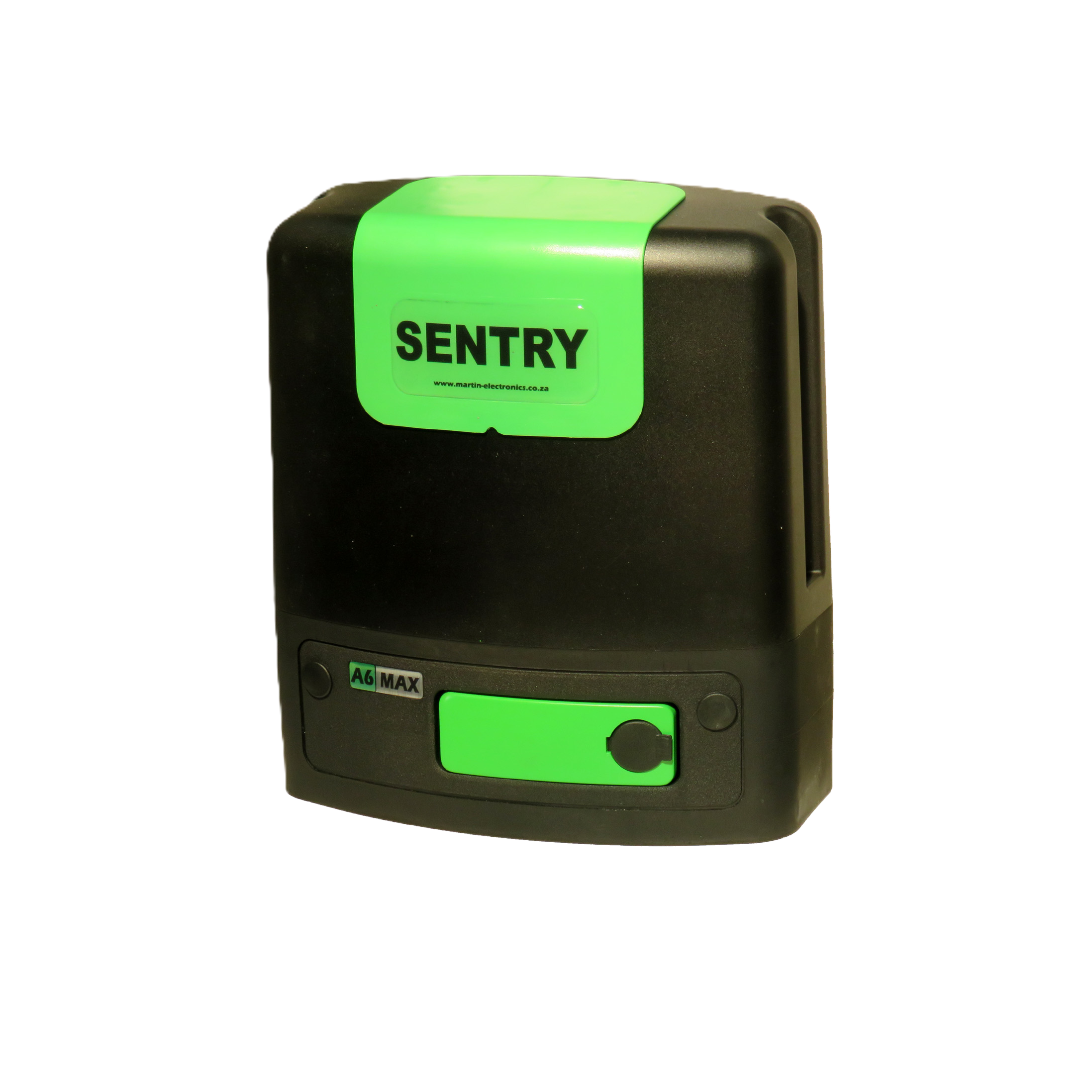 The SENTRY A6 Max is a sliding gate operator that incorporates a custom designed worm-drive gearbox, a rigid moulded-base manufactured by utilizing robust engineering polymers, coupled to a powerful 12V DC motor, and an IoT-enabled intelligent control card. The unit provides real-time access control and status updates via the Sentry App and Web platforms now available to all A6 Max owners. 220VAC mains power the product and it has true battery backup with facility to connect a regulated solar power supply (13.8V Maximum) to keep the battery in a fully charged state. The A6 Max is powered via a power supply unit, which also keeps the battery in a fully charged state.